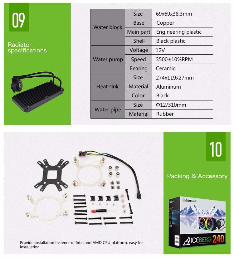 | Radiator Dimension | 153mm x 240mm x 27mm |
