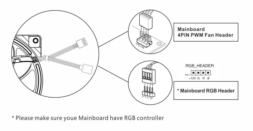 If your motherboard supports RGB lighting, then you can use software control by simply plugging in the RGB connector (included) in o the RGB Header on your motherboard