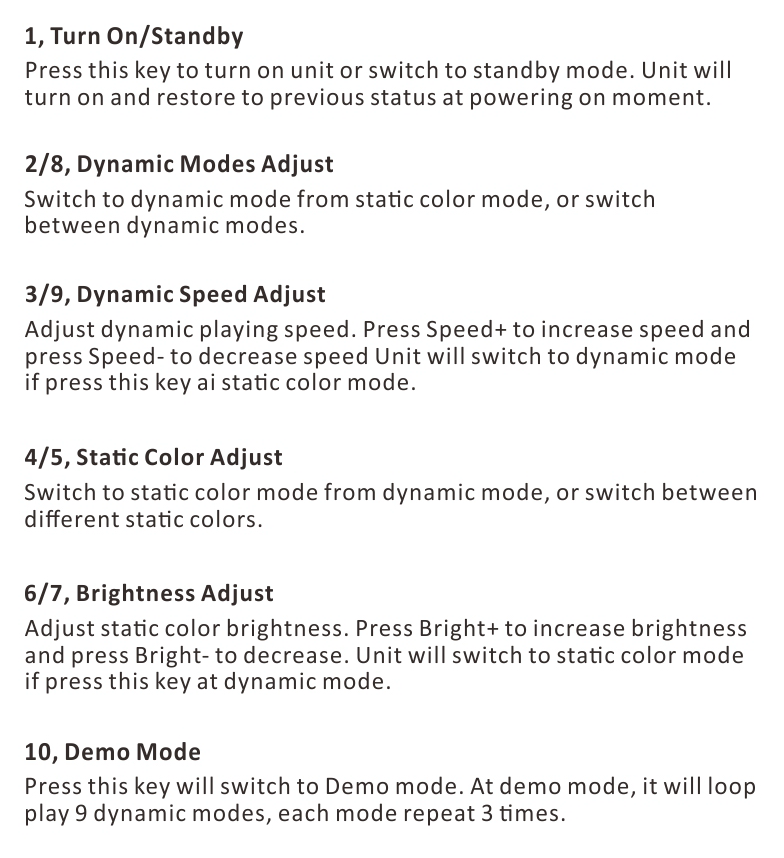 Various programmed led lighting colors
