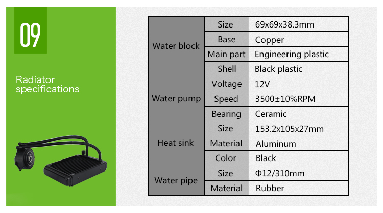 | Radiator Dimension | 153mm x 240mm x 27mm |